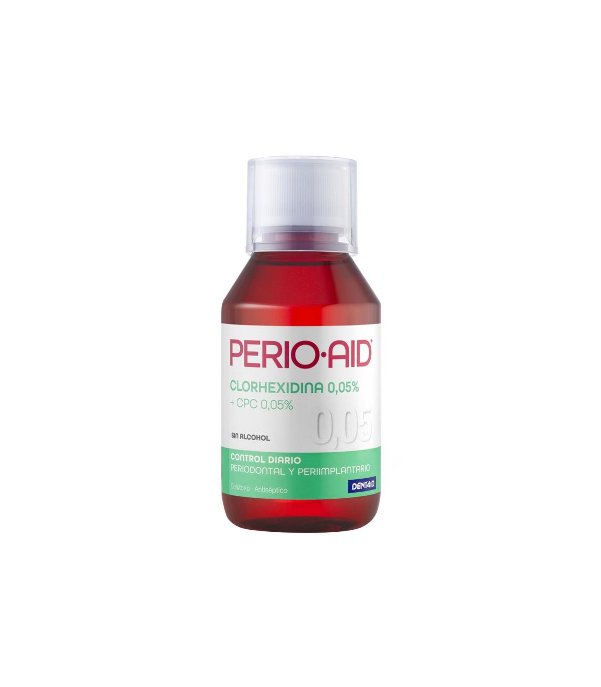Gracias a su composición a base de clorhexidina (CHX) 0,05% y cloruro de cetilpiridinio (CPC) 0,05%, PERIO·AID® 0,05% Mantenimiento y Control colutorio es la primera clorhexidina a baja concentración que ayuda a controlar de forma diaria el biofilm bucal (placa bacteriana) causante de la enfermedad periodontal y periimplantaria.