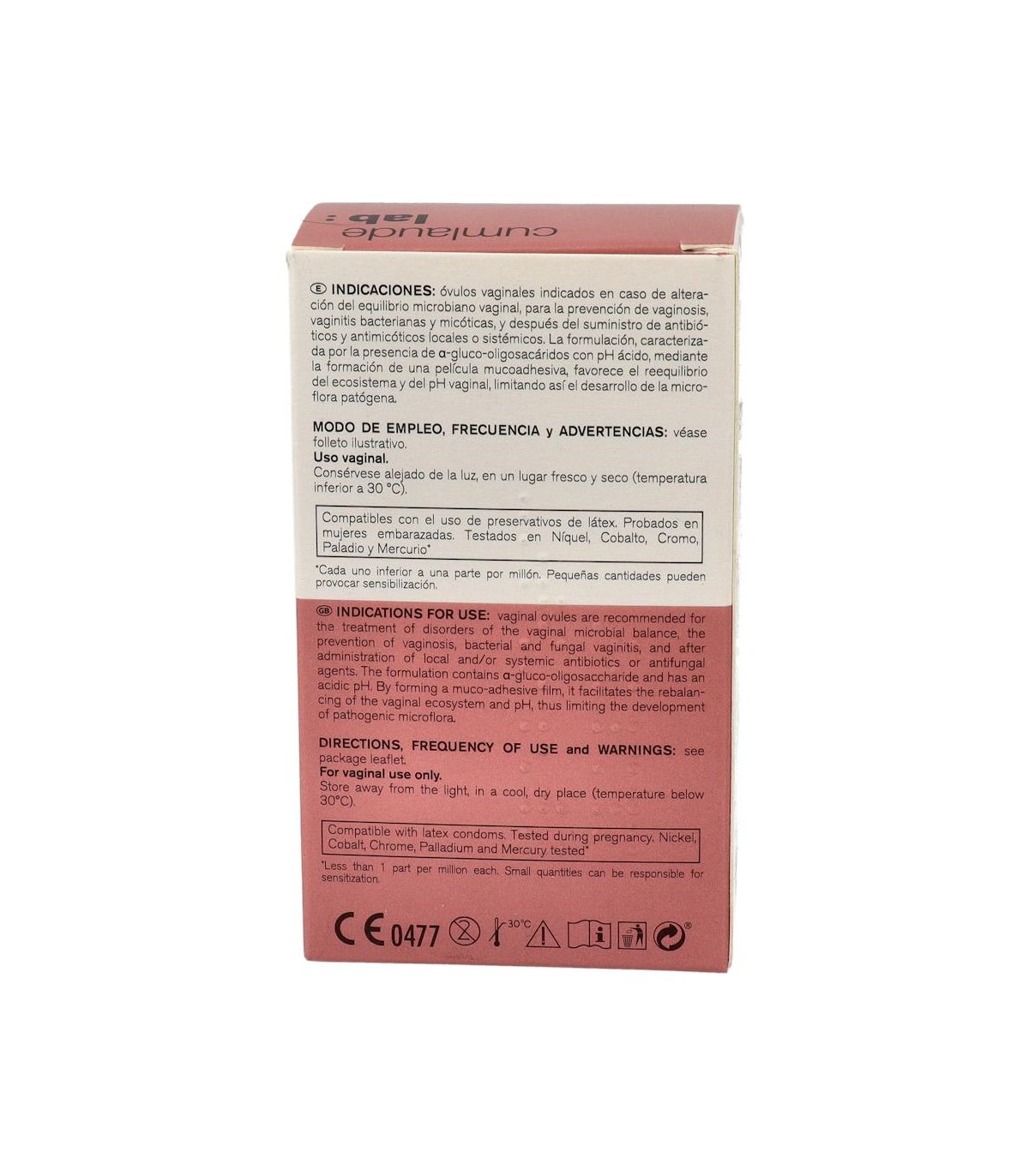 Óvulos vaginales prebióticos indicados en caso de la alteración del equilibrio de la microbiota vaginal, para la prevención de vaginosis, vaginitis bacterianas y micóticas y tras la administración de antibióticos o antimicóticos locales y/o sistémicos. Formulados con alfa-glucooligosacáridos, ácidos lácticos y enriquecidos con pro-vitamina B5, permiten reequilibrar el ecosistema y el pH vaginal limitando el desarrollo de la microflora patógena. Proporciona una acción calmante y protectora.