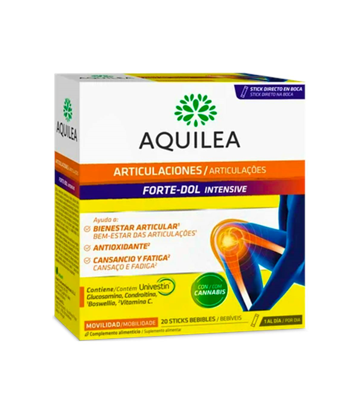 Aquilea Articulaciones Forte-dol Intensive es un cómodo stick bebible que se puede tomar sin agua en cualquier momento de necesidad aguda.
