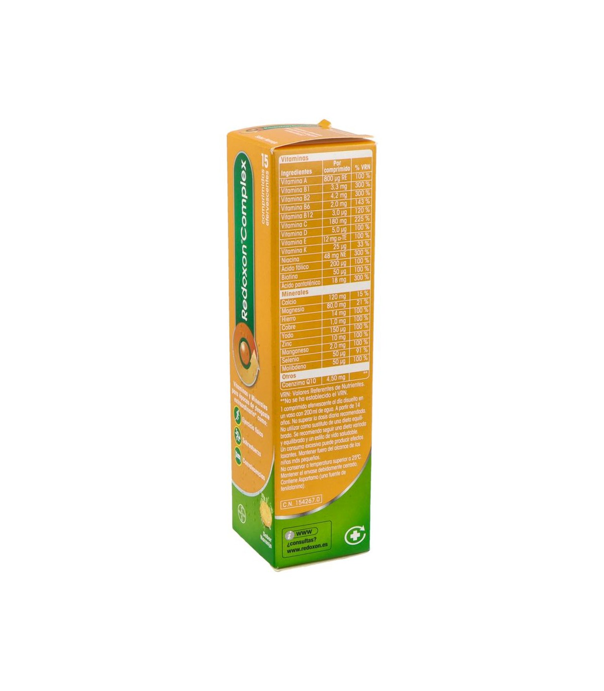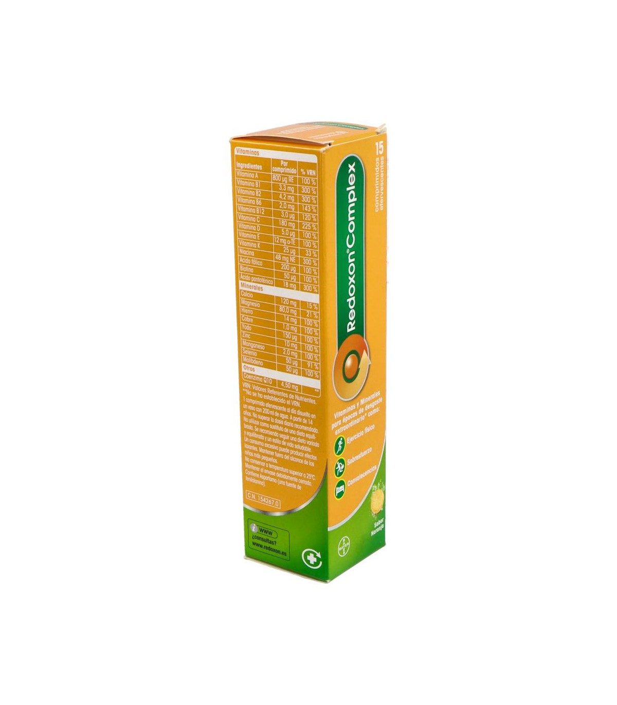 Ejercicio Físico: es recomendable el consumo de vitaminas y minerales para mantener el rendimiento físico. Redoxon® Complex no produce efecto doping. Se recomienda tomar 1 comprimido efervescente al día, preferentemente por la mañana.