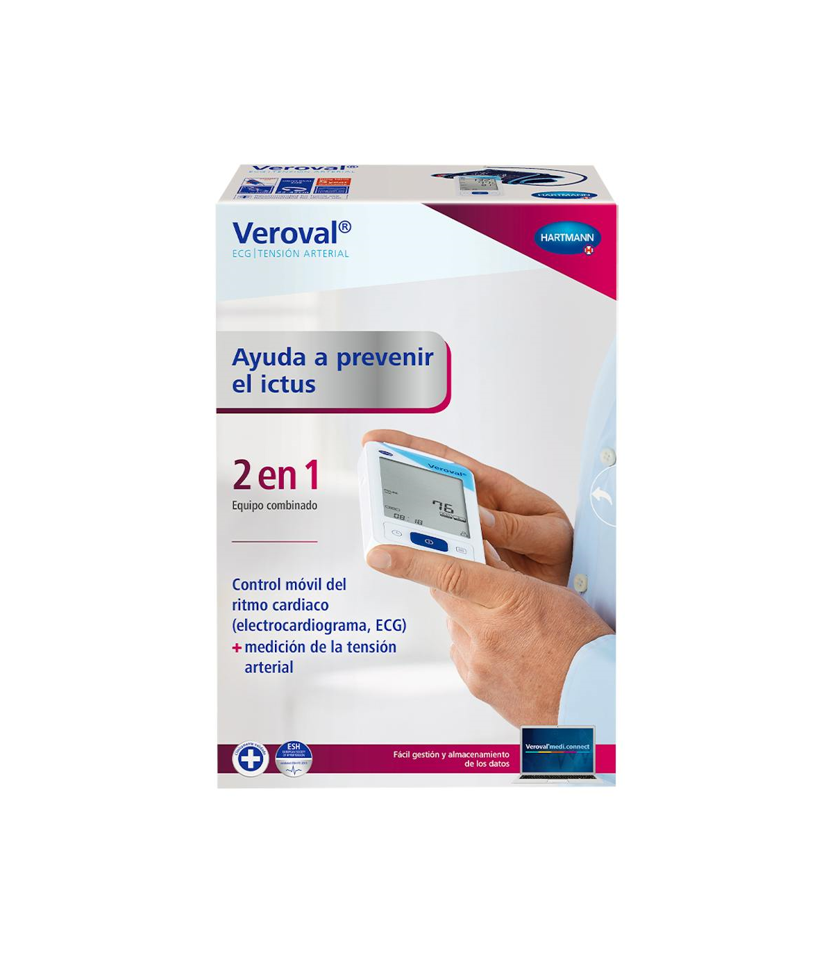 Tensiometro para la medición automática en el brazo de la presión arterial de adultos y para el registro móvil de ECG (electrocardiograma).