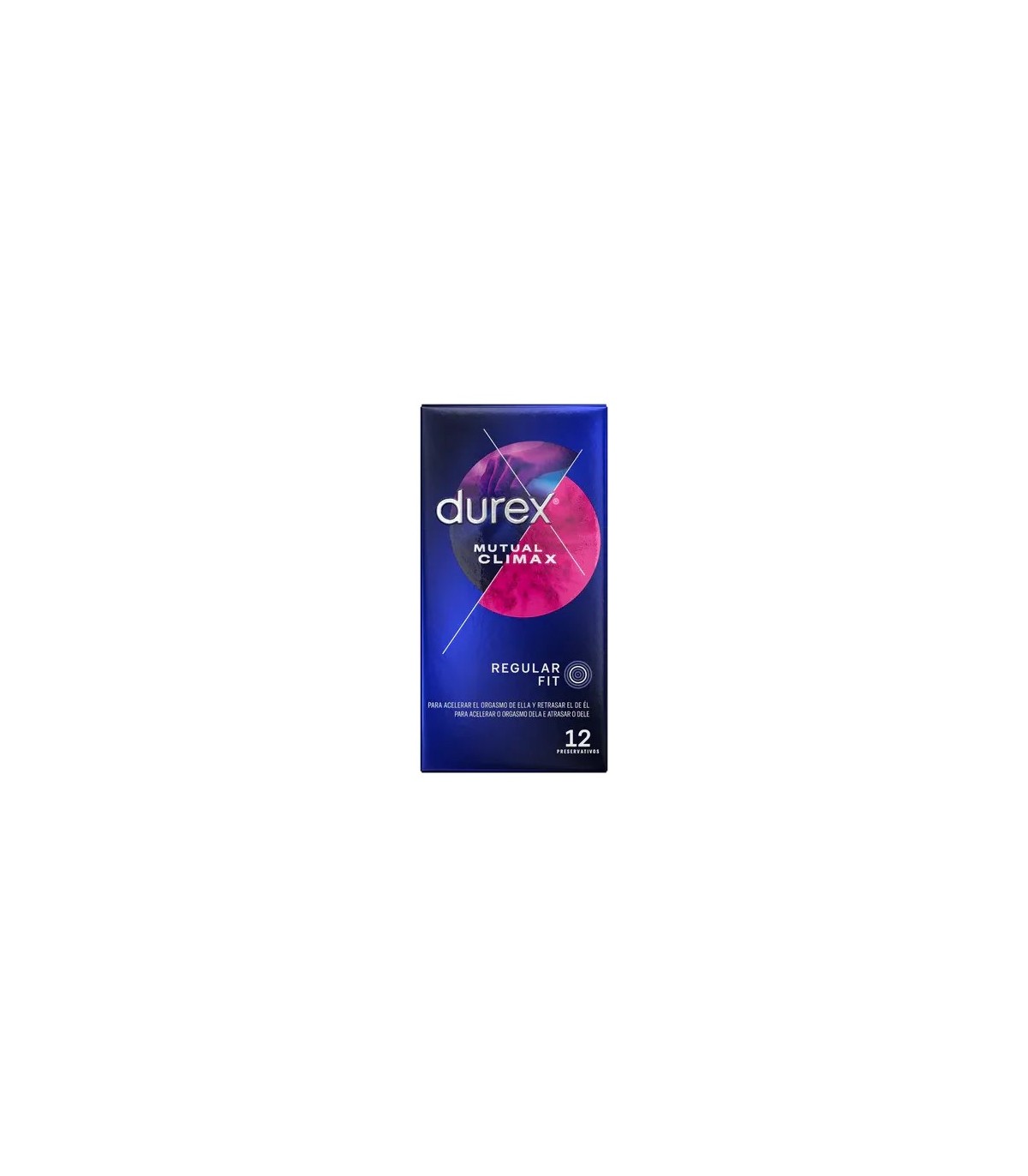Preservativos Durex Mutual Climax con puntos y estrías para acelerar el orgasmo de ella y con lubricante reforzado para que él aguante más.